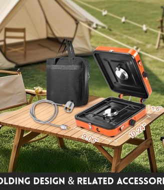 • Sale! GGC Camping Stove 2 Burner, 20,000 BTU Foldable Camping Stove, Propane Portable Camp Stove with Adjustable Flame, Piezo Ignition & Carry Bag, Portable Stove for Camping, Picnics, and Outdoor Cooking